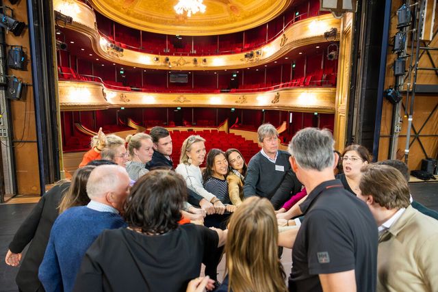 After a sunny walk, we continued to the Biotech Training Facility, where we were given a behind-the-scenes tour of the impressive life science laboratories. This was followed by a special journey through the human body at the CORPUS Congress Centre. After lunch in the Intestines meeting room, we headed into the city centre for a tour of Leiden's canals and historical treasures. One of the highlights was a visit to the Leidse Schouwburg-Stadsgehoorzaal, which provided an inspiring tour including a theatre sports session by Moeders Mooiste.