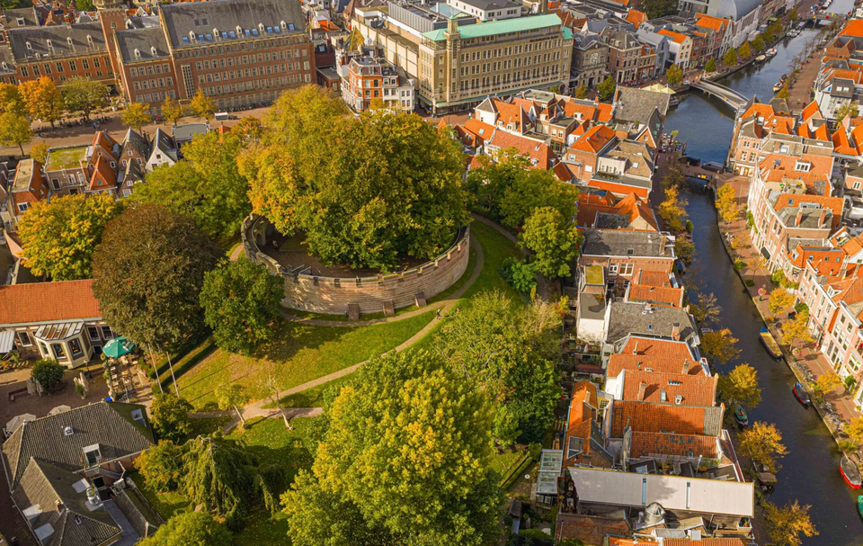 De Burcht is misschien wel het oudste stukje Leiden. Al in de 11e eeuw stond hier een ronde vesting op een kunstmatige heuvel, gebouwd om de stad te beschermen, waar de Rijn en de Mare samenkomen. Eeuwenlang keek de Burcht uit over het leven in de stad en nog steeds is het een van de meest herkenbare plekken van Leiden.