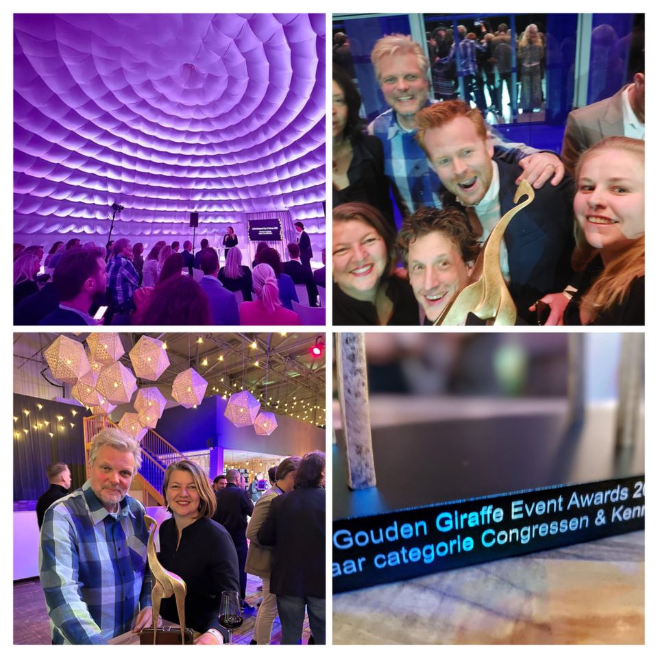 Voor het eerst na de pandemie vonden de Gouden Giraffe Event Awards live plaats. De Gouden Giraffe Event Awards wordt ook wel gezien als de Oscars van de Nederlandse evenementenbranche en eren het beste wat ons land te bieden heeft op het gebied van live communicatie en experience marketing. Honderden eventprofessionals verzamelden zich 's middags in TheaterHangaar in Katwijk om de 42 ingediende cases te bespreken.