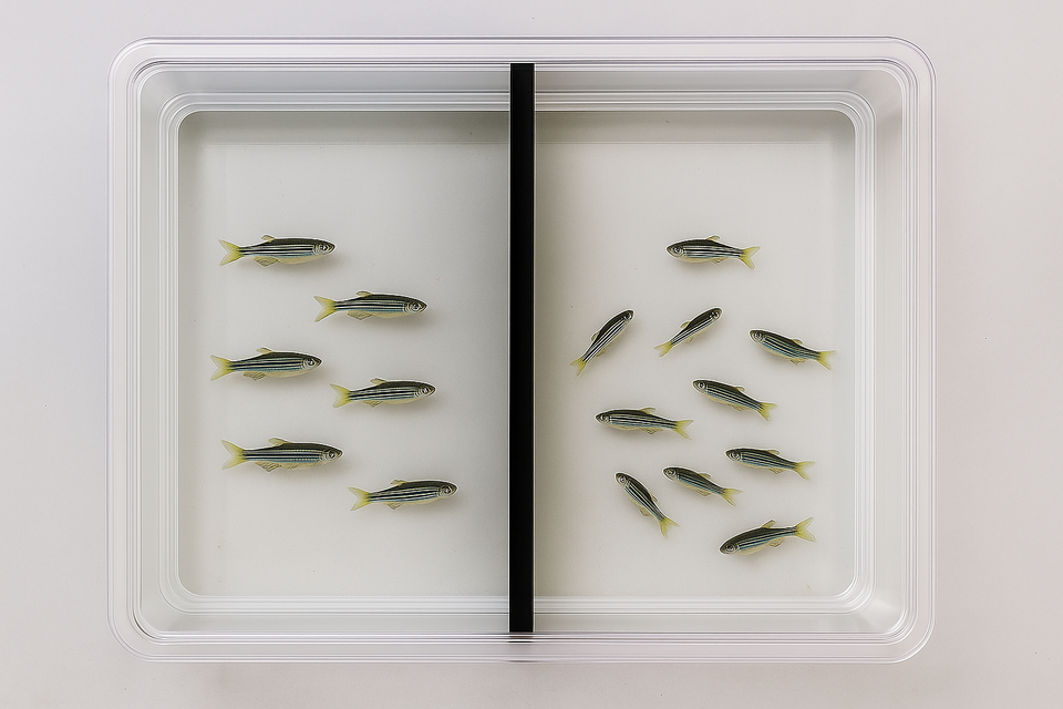 Zebravissen worden veel gebruikt in biomedisch wetenschappelijk onderzoek, en dat is niet zonder reden. Ze zijn makkelijk te houden, planten zich snel voort en misschien wel het meest bijzonder, ze hebben elk een eigen persoonlijkheid. De ene zebravis is socialer, agressiever of risicovoller ingesteld dan de andere, waardoor ze sterk lijken op mensen. Juist die variatie maakt ze uitermate geschikt als onderzoekspopulatie, omdat ze een representatief beeld geven van de diversiteit binnen een doelgroep. In onderzoek van de Universiteit Leiden werd bijvoorbeeld gekeken naar hoe zebravissen zich gedragen in hun vertrouwde leefomgeving en hoe ze reageren op nieuwe situaties. Met behulp van speciale bakken met een muurtje ertussen raakten de vissen eerst gewend aan één kant. Daarna werd het muurtje deels opgetild, waardoor ze toegang kregen tot een onbekend stukje water – een zorgvuldig gecontroleerde manier om hun gedragsreacties op verandering te bestuderen.
